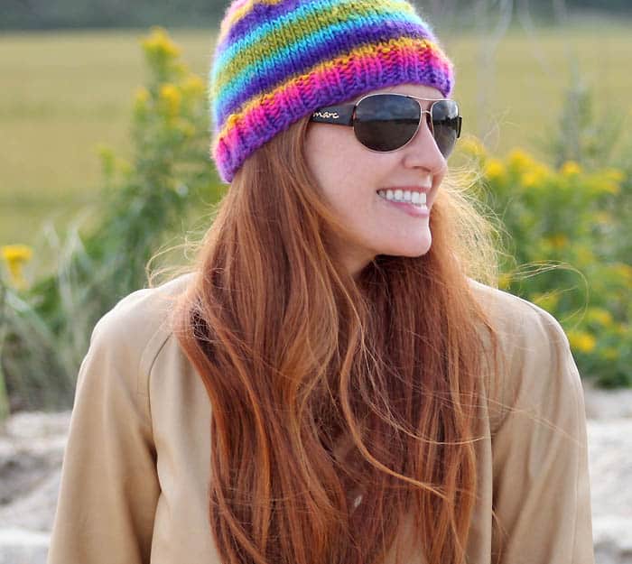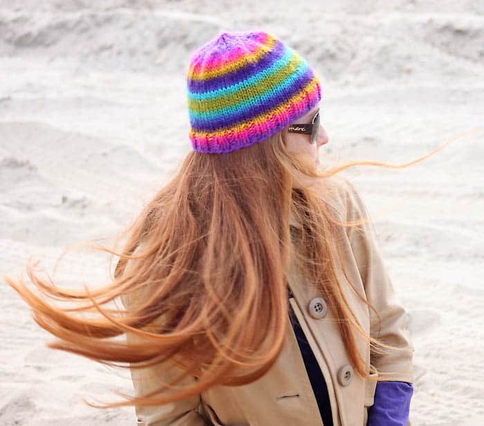 Knit a simple striped beanie on straight needles with this beginner-friendly pattern. Uses self-striping yarn for effortless color changes.