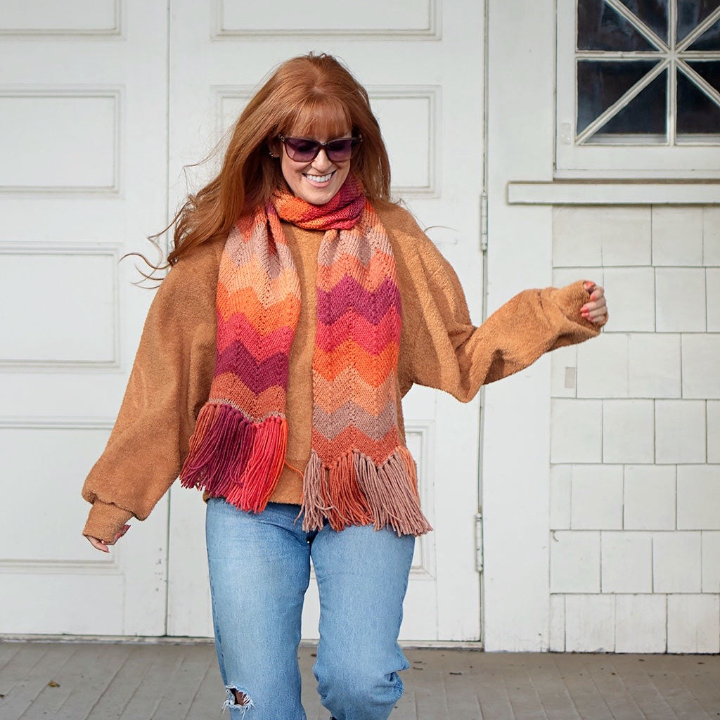 Cozy up in style with this gorgeous zig zag scarf design! The easy chevron stitch pairs perfectly with self-striping worsted weight yarn, creating beautiful color changes without the hassle.